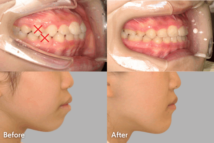 マウスピースで矯正できる場合はありますが、仕上がりの口元や横顔のバランスをしっかり整えるために、ワイヤー矯正を併用するケースが多いです。