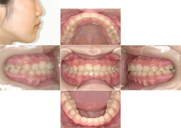 出っ歯とすきっ歯の改善を希望されて相談にいらした患者さまです。口元の突出感が気になるとのことだったので、抜歯矯正をお勧めしましたが、患者さまのご希望で歯を抜かずに治療を開始しました。