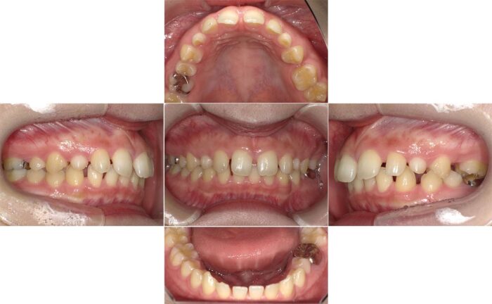 - 抜歯部位:上顎左右犬歯・上顎左側第二小臼歯(欠損)、上顎右側乳犬歯