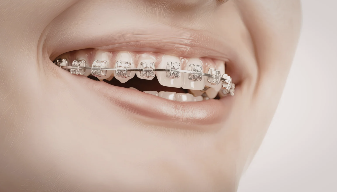 従来の矯正装置は、金属製のブラケット(歯に接着する小さな装置)と銀色のワイヤーを使用していました。これらは口を開けると目立ちやすく、「矯正していることが一目でわかる」状態でした。特に、金属の光沢が歯の白さと対照的で、視覚的に目を引いてしまうのです。