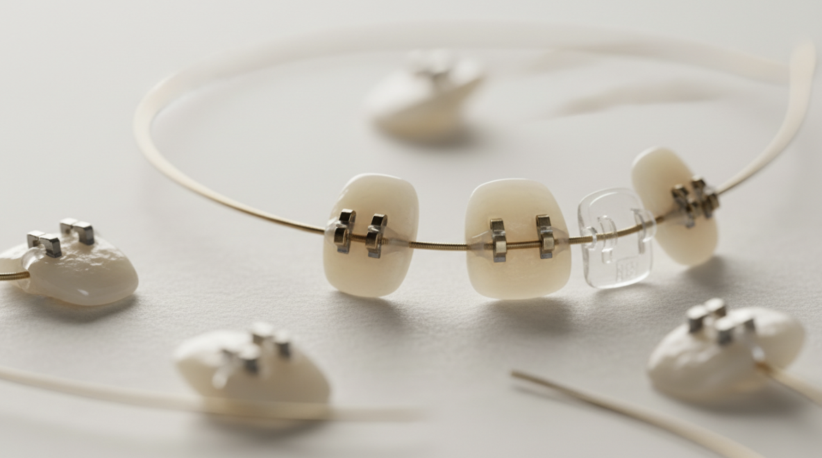 金属ブラケットとシルバーワイヤーの視覚的影響