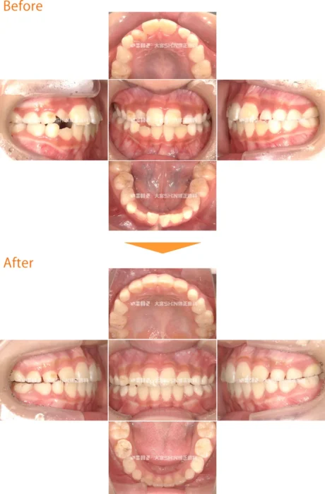 拡大床とマウスピース型矯正装置(インビザライン・ファースト)を併用して頂いたことで、歯を並べる土台作りだけでなく、噛み合わせや歯のガタツキも改善できました。