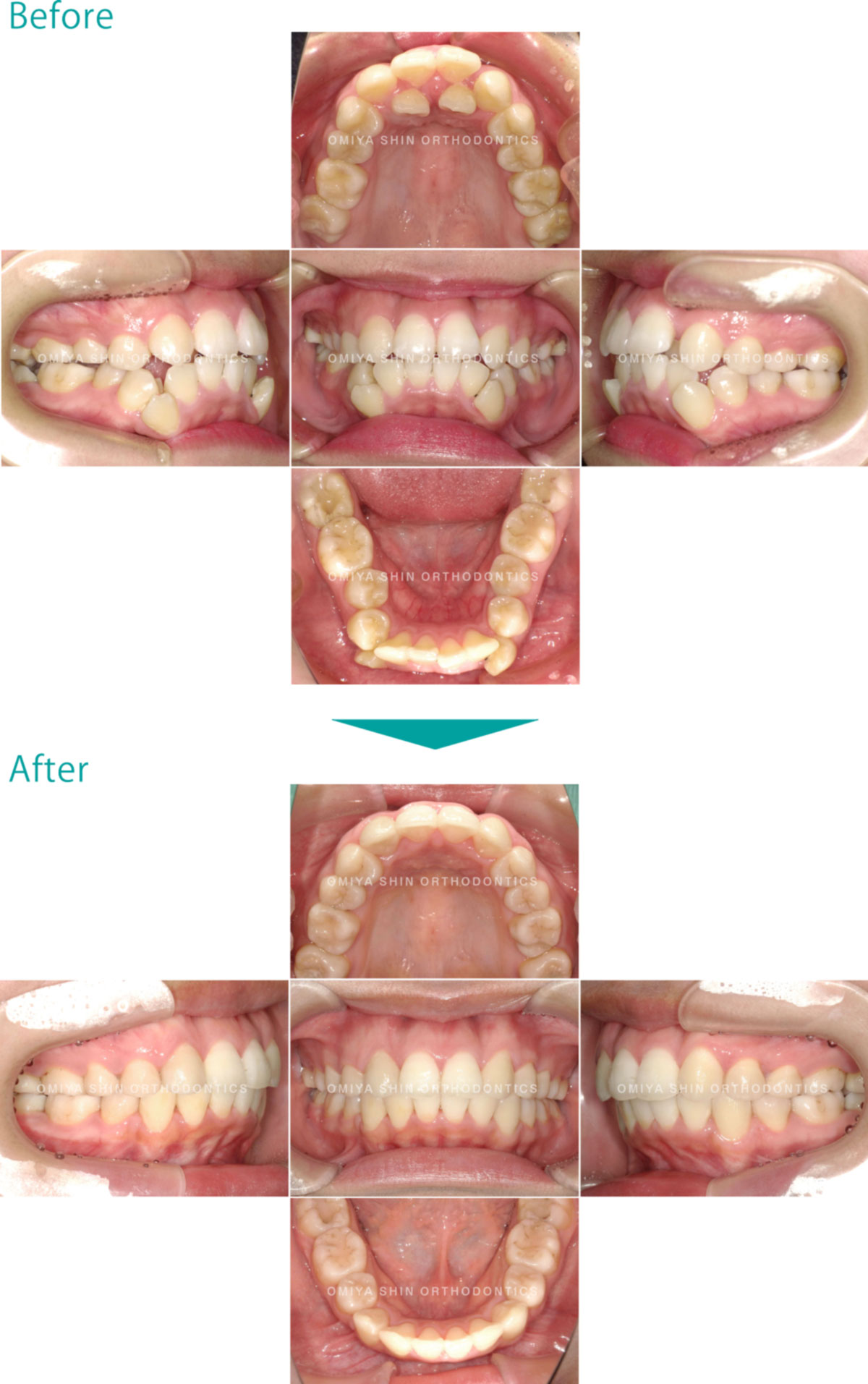CASE 199 叢生(ガタガタ) 19歳/女性/治療期間:2年11ヶ月 抜歯 表側矯正 ガタガタなことを気にして来院された患者様です。抜歯(上顎左右側切歯、下顎左右第一小臼歯)で、表側矯正(ワイヤー)を使用して、ガタガタと咬み合わせを改善しました。 主訴:ガタガタが気になる 診断名:叢生 初診時年齢・性別:19歳・女性 治療装置:表側矯正(ワイヤー) 抜歯or非抜歯:抜歯(上顎左右側切歯、下顎左右第一小臼歯) 治療期間:2年11ヶ月 リスクと副作用:痛み、歯根吸収、歯肉退縮、虫歯、後戻り 費用:86万円程度(税別) 詳細はこちらをご覧ください 症例一覧へ