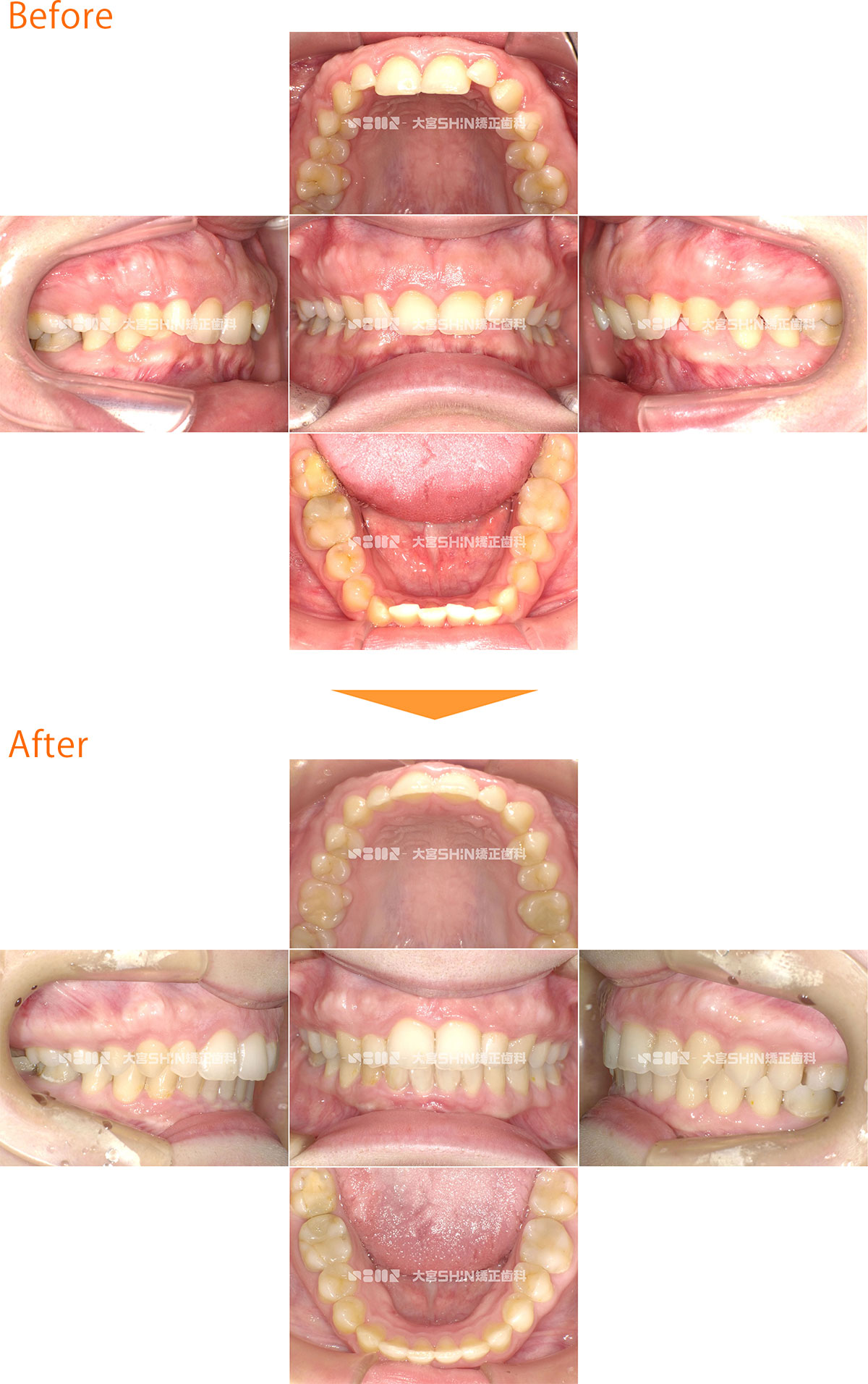 過蓋咬合(咬み合わせが深い) 27歳/女性/治療期間:3年2ヶ月 非抜歯 マウスピース矯正装置(インビザライン) 咬み合わせが深いことを気にして来院された患者様です。非抜歯で、IPR(上下の歯をヤスリがけ)して、マウスピース型矯正装置(インビザライン)を使用し、咬み合わせを改善しました。 主訴:咬み合わせが深い 診断名:過蓋咬合 初診時年齢・性別:27歳・女性 治療装置:マウスピース型矯正装置(インビザライン) 抜歯or非抜歯:非抜歯 治療期間:3年2ヶ月 リスクと副作用:痛み、歯根吸収、歯肉退縮、虫歯、後戻り 費用:85万円程度(税別) 詳細はこちらをご覧ください 症例一覧へ