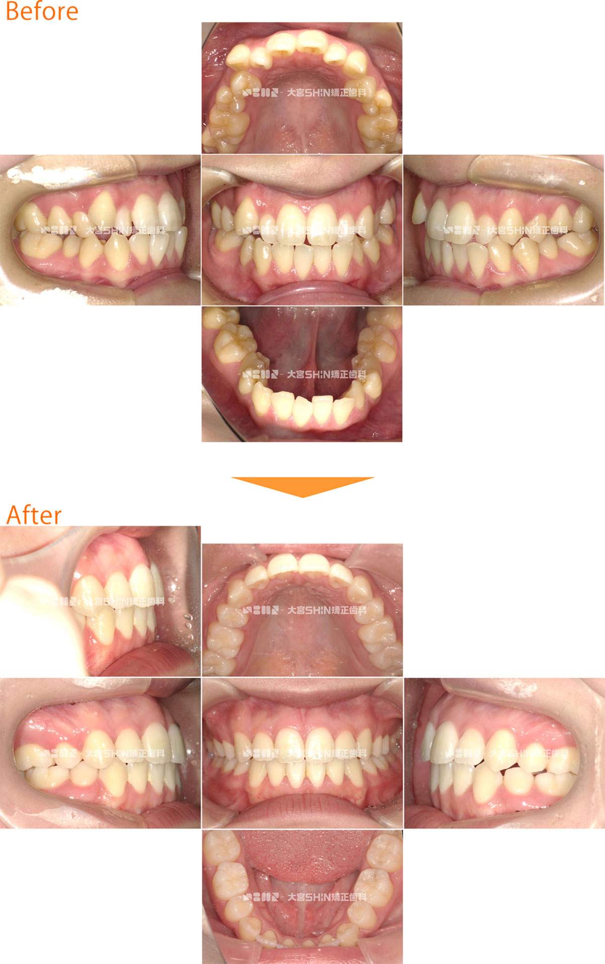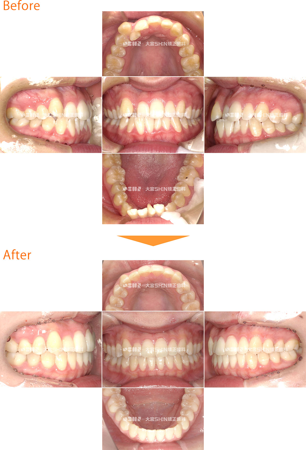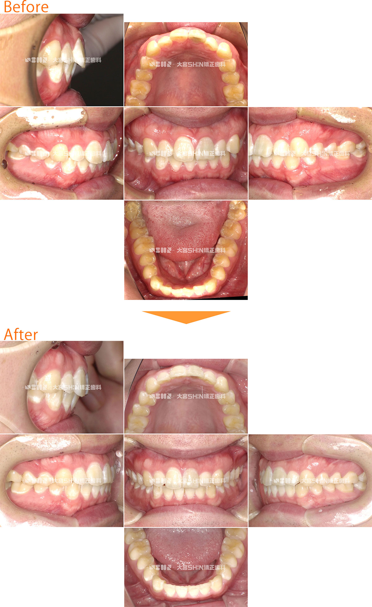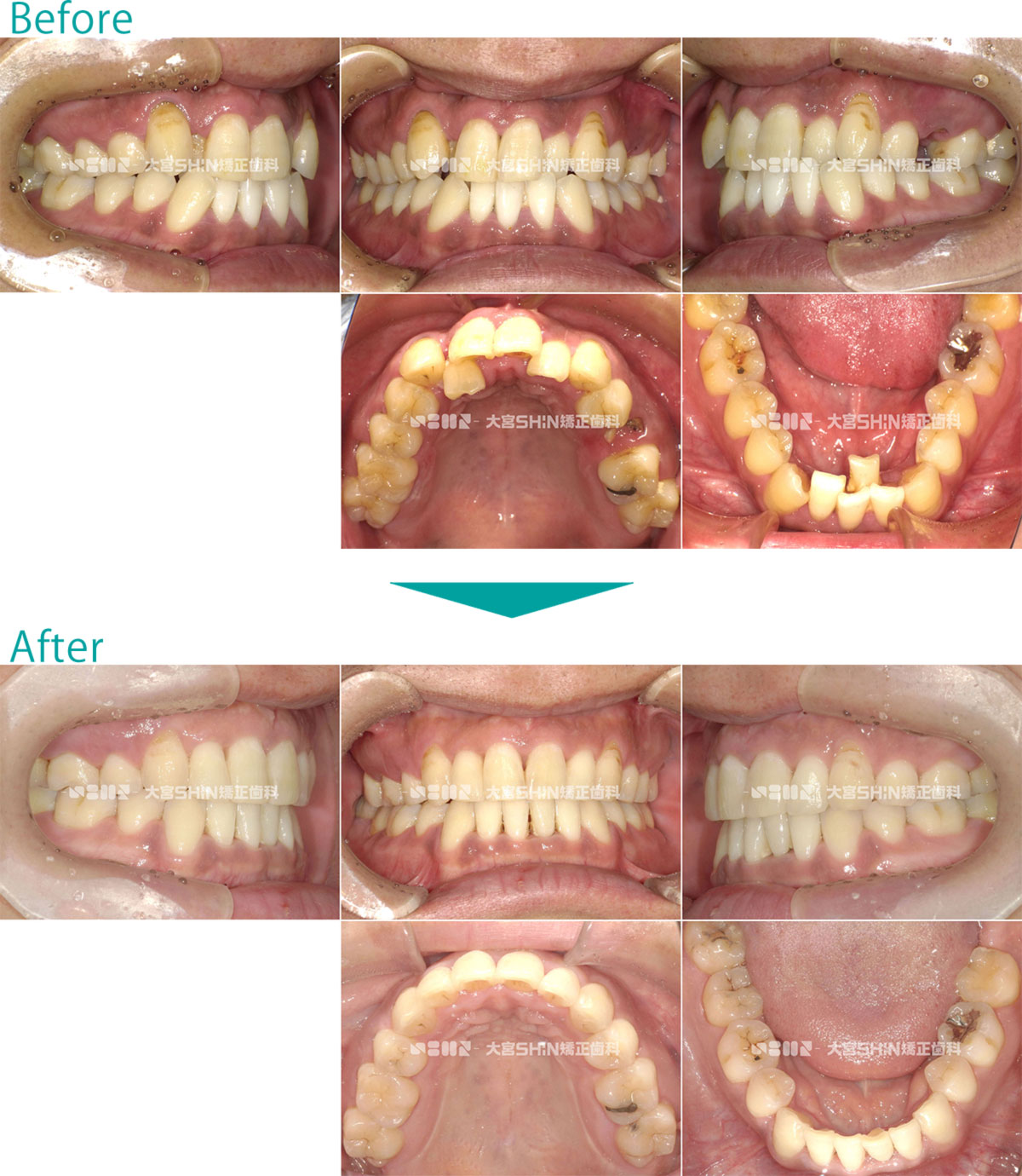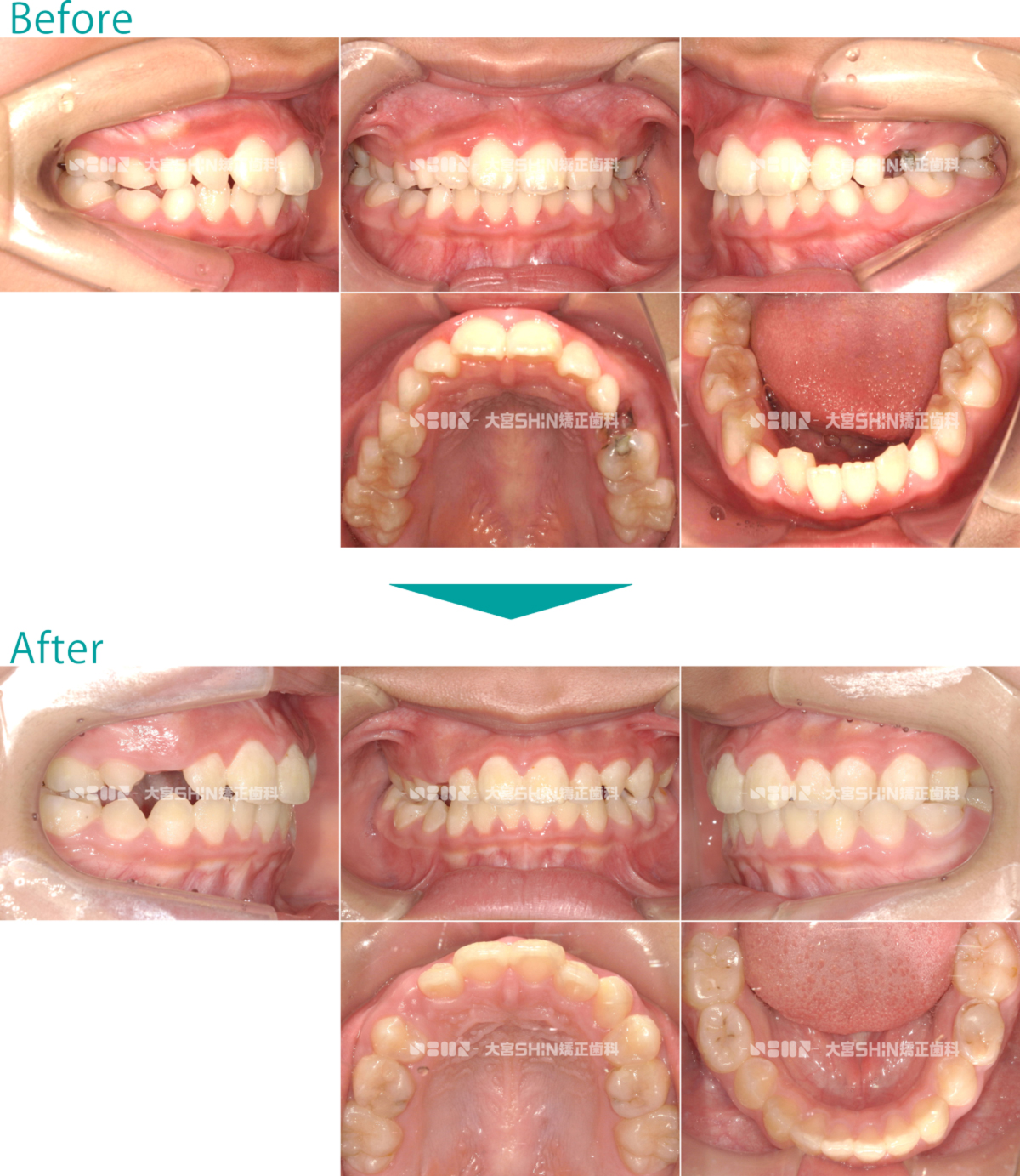 歯並びの状態 選択しない上下顎前突(口元の突出/口ゴボ)上顎前突(出っ歯)叢生(ガタガタ・八重歯)反対咬合(受け口)開咬(前歯が開いている)・舌癖過蓋咬合(かみ合わせが深い・下の前歯が見えにくい)空隙歯列(すきっ歯・正中離開)交叉咬合(挟状咬合)ガミースマイル埋伏歯(歯が出てこない)欠損歯(歯が少ない)矮小歯(歯が小さい)過剰歯(歯が多い) 使用装置 選択しないマウスピース矯正装置(インビザライン)ワイヤー矯正舌側矯正マウスピースとワイヤーの併用矯正用アンカースクリュー拡大装置(拡大床・急速拡大装置)小児矯正(機能矯正)子ども用マウスピース矯正装置(インビザラインファースト)部分矯正遠心移動装置(カリエール) 抜歯/非抜歯 選択しない抜歯非抜歯前歯抜歯 年齢 選択しない子どもの矯正(12歳以下)10代20代30代40代50代以上 性別 選択しない女性男性 CASE 438 叢生(ガタガタ)、八重歯 25歳/女性/治療期間:2年2ヶ月 非抜歯 マウスピース矯正装置(インビザライン) 症例の詳細はこちら ガタガタなことを気にして来院された患者様です。非抜歯で、IPR(上下の歯をヤスリがけ)して、マウスピース型矯正装置(インビザライン)を使用し、ガタガタと咬み合わせを改善しました。 主訴:ガタガタが気になる 診断名:叢生 初診時年齢・性別:25歳・女性 治療装置:マウスピース型矯正装置(インビザライン) 抜歯or非抜歯:非抜歯 治療期間:2年2ヶ月 リスクと副作用:痛み、歯根吸収、歯肉退縮、虫歯、後戻り 費用:86万円程度(税別) 詳細はこちらをご覧ください 症例の詳細はこちら CASE 437 叢生(ガタガタ) 8歳/女の子/治療期間:1年5ヶ月 非抜歯 小児矯正(拡大床) 症例の詳細はこちら ガタガタを気にして来院された患者様です。非抜歯で、取り外し式矯正装置(拡大床)を使用し、永久歯が生えるスペースを確保して、ガタガタを改善しました。 主訴:ガタガタが気になる 診断名:叢生 初診時年齢・性別:8歳・女の子 治療装置:拡大床 抜歯or非抜歯:非抜歯 治療期間:1年5ヶ月 リスクと副作用:痛み、歯根吸収、歯肉退縮、虫歯、後戻り 費用:39万円程度(税別) 詳細はこちらをご覧ください 症例の詳細はこちら CASE 436 叢生(ガタガタ)、八重歯 19歳/女性/治療期間:1年6ヶ月 非抜歯 マウスピース矯正装置(インビザライン) 症例の詳細はこちら ガタガタなことを気にして来院された患者様です。非抜歯で、IPR(上下の歯をヤスリがけ)して、マウスピース型矯正装置(インビザライン)を使用し、ガタガタと咬み合わせを改善しました。 主訴:ガタガタが気になる 診断名:叢生 初診時年齢・性別:19歳・女性 治療装置:マウスピース型矯正装置(インビザライン) 抜歯or非抜歯:非抜歯 治療期間:1年6ヶ月 リスクと副作用:痛み、歯根吸収、歯肉退縮、虫歯、後戻り 費用:85万円程度(税別) 詳細はこちらをご覧ください 症例の詳細はこちら CASE 435 叢生(ガタガタ) 34歳/男性/治療期間:3年4ヶ月 抜歯 表側矯正 症例の詳細はこちら ガタガタを気にして来院された患者様です。抜歯(上顎右側第一小臼歯、上顎左側第二小臼歯、下顎左右第一小臼歯)で、表側矯正(ワイヤー)を使用し、ガタガタと咬み合わせを改善しました。 主訴:ガタガタが気になる 診断名:叢生 初診時年齢・性別:29歳・男性 治療装置:表側矯正(ワイヤー) 抜歯or非抜歯:抜歯(上顎右側第一小臼歯、上顎左側第二小臼歯、下顎左右第一小臼歯) 治療期間:3年4ヶ月 リスクと副作用:痛み、歯根吸収、歯肉退縮、虫歯、後戻り 費用:79万円程度(税別) 詳細はこちらをご覧ください 症例の詳細はこちら CASE 434 上下顎前突(口元の突出) 24歳/男性/治療期間:1年10ヶ月 非抜歯 マウスピース矯正装置(インビザライン) 症例の詳細はこちら 出っ歯なことを気にして来院された患者様です。非抜歯で、IPR(上下の歯をヤスリがけ)して、マウスピース型矯正装置(インビザライン)を使用し、咬み合わせを改善しました。 主訴:出っ歯 診断名:上下顎前突 初診時年齢・性別:24歳・男性 治療装置:マウスピース型矯正装置(インビザライン) 抜歯or非抜歯:非抜歯 治療期間:1年10ヶ月 リスクと副作用:痛み、歯根吸収、歯肉退縮、虫歯、後戻り 費用:85万円程度(税別) 詳細はこちらをご覧ください 症例の詳細はこちら CASE 433 叢生(ガタガタ)、上顎前突(出っ歯) 28歳/女性/治療期間:2年6ヶ月 抜歯 表側矯正 症例の詳細はこちら 出っ歯を気にして来院された患者様です。抜歯(上下左右第一小臼歯)で、表側矯正(ワイヤー)を使用し、ガタガタと咬み合わせを改善しました。 主訴:出っ歯が気になる 診断名:上顎前突・叢生 初診時年齢・性別:28歳・女性 治療装置:表側矯正(ワイヤー) 抜歯or非抜歯:抜歯(上下左右第一小臼歯) 治療期間:2年6ヶ月 リスクと副作用:痛み、歯根吸収、歯肉退縮、虫歯、後戻り 費用:78万5千円程度(税別) 詳細はこちらをご覧ください 症例の詳細はこちら CASE 432 叢生(ガタガタ) 26歳/女性/治療期間:3年1ヶ月 非抜歯 マウスピース矯正装置(インビザライン) 症例の詳細はこちら ガタガタなことを気にして来院された患者様です。非抜歯で、IPR(上下の歯をヤスリがけ)