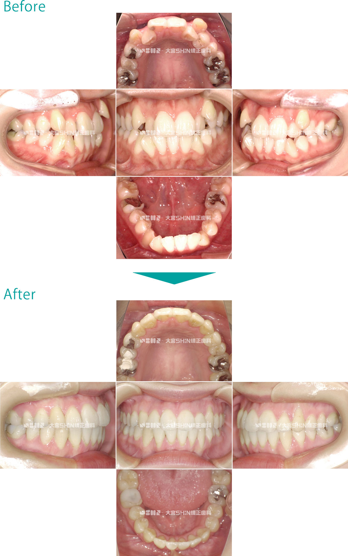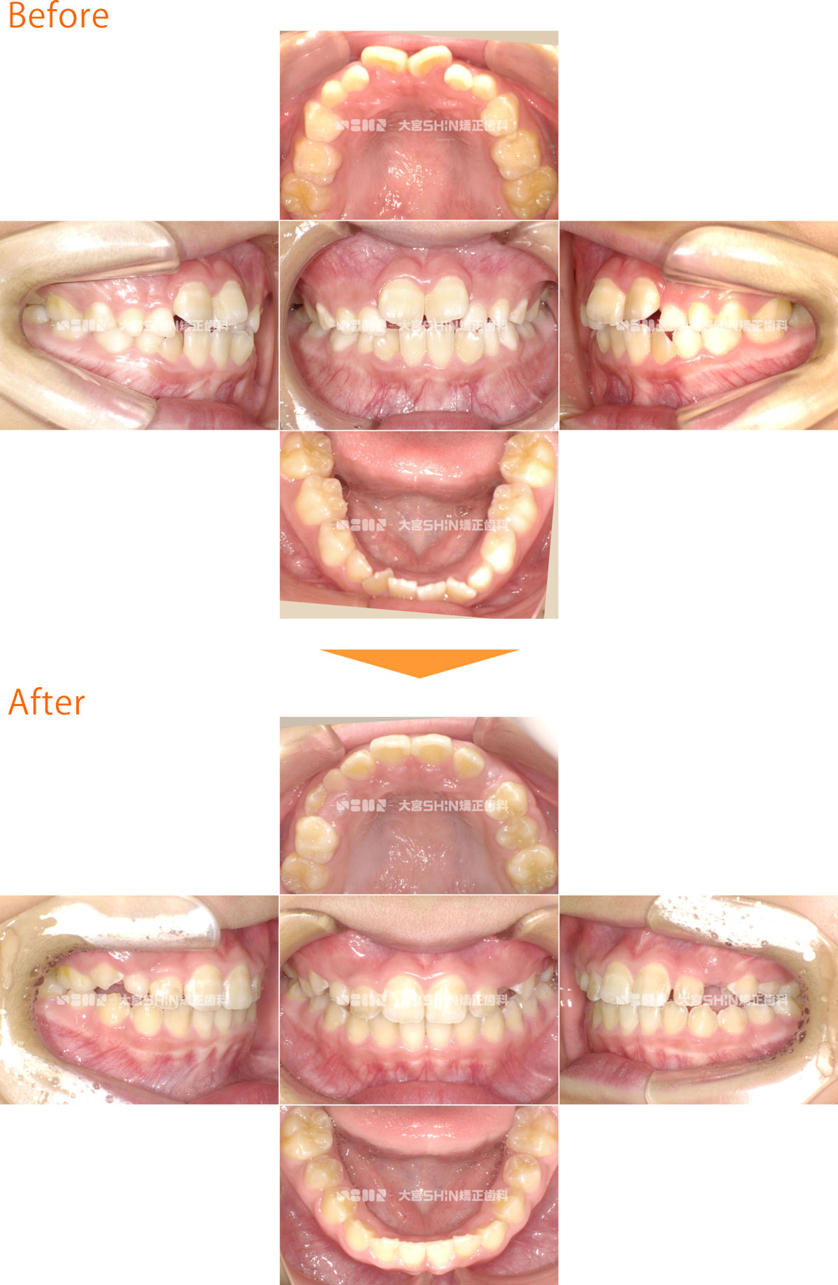 歯並びの状態 選択しない上下顎前突(口元の突出/口ゴボ)上顎前突(出っ歯)叢生(ガタガタ・八重歯)反対咬合(受け口)開咬(前歯が開いている)・舌癖過蓋咬合(かみ合わせが深い・下の前歯が見えにくい)空隙歯列(すきっ歯・正中離開)交叉咬合(挟状咬合)ガミースマイル埋伏歯(歯が出てこない)欠損歯(歯が少ない)矮小歯(歯が小さい)過剰歯(歯が多い) 使用装置 選択しないマウスピース矯正装置(インビザライン)ワイヤー矯正舌側矯正マウスピースとワイヤーの併用矯正用アンカースクリュー拡大装置(拡大床・急速拡大装置)小児矯正(機能矯正)子ども用マウスピース矯正装置(インビザラインファースト)部分矯正遠心移動装置(カリエール) 抜歯/非抜歯 選択しない抜歯非抜歯前歯抜歯 年齢 選択しない子どもの矯正(12歳以下)10代20代30代40代50代以上 性別 選択しない女性男性 CASE 376 叢生(ガタガタ)、空隙歯列(正中離開、すきっ歯) 7歳/女の子/治療期間:2年3ヶ月 非抜歯 表側矯正 小児矯正(拡大床) 症例の詳細はこちら 前歯のすき間を気にして来院された患者様です。非抜歯で、取り外し式矯正装置(拡大床)を使用し、永久歯が生えるスペースを確保した後、表側矯正(ワイヤー)でガタガタと前歯のすき間を改善しました。 主訴:前歯のすき間が気になる 診断名:正中離開・叢生 初診時年齢・性別:7歳・女の子 治療装置:拡大床、表側矯正(ワイヤー) 抜歯or非抜歯:非抜歯 治療期間:2年3ヶ月 リスクと副作用:痛み、歯根吸収、歯肉退縮、虫歯、後戻り 費用:40万円程度(税別) 詳細はこちらをご覧ください 症例の詳細はこちら CASE 375 叢生(ガタガタ)、空隙歯列(正中離開、すきっ歯) 19歳/男性/治療期間:3年 非抜歯 マウスピース矯正装置(インビザライン) 症例の詳細はこちら ガタガタと前歯の隙間を気にして来院された患者様です。非抜歯で、IPR(上下の歯のヤスリがけ)して、マウスピース矯正装置(インビザライン)を使用し、前歯の隙間とガタガタとかみ合わせを改善しました。 主訴:ガタガタと前歯の隙間が気になる 診断名:叢生・正中離開 初診時年齢・性別:19歳・男性 治療装置:マウスピース型矯正装置(インビザライン) 抜歯部位:なし 治療期間:3年 リスクと副作用:痛み、歯根吸収、歯肉退縮、虫歯、後戻り 費用:84万円程度(税別) 詳細はこちらをご覧ください 症例の詳細はこちら CASE 374 叢生(ガタガタ)、上顎前突(出っ歯) 26歳/女性/治療期間:3年 抜歯 マウスピース矯正装置(インビザライン) 症例の詳細はこちら 出っ歯とガタガタを気にして来院された患者様です。抜歯(上顎左右第一小臼歯、下顎左側中切歯)で、IPR(上下の歯をヤスリがけ)して、マウスピース型矯正装置(インビザライン)を使用し、ガタガタと咬み合わせを改善しました。 主訴:出っ歯とガタガタ 診断名:上顎前突・叢生 初診時年齢・性別:26歳・女性 治療装置:マウスピース型矯正装置(インビザライン) 抜歯or非抜歯:抜歯(上顎左右第一小臼歯、下顎左側中切歯) 治療期間:3年 リスクと副作用:痛み、歯根吸収、歯肉退縮、虫歯、後戻り 費用:85万円程度(税別) 詳細はこちらをご覧ください 症例の詳細はこちら CASE 373 叢生(ガタガタ)、空隙歯列(正中離開、すきっ歯) 24歳/女性/治療期間:1年3ヶ月 非抜歯 マウスピース矯正装置(インビザライン) 症例の詳細はこちら ガタガタなことと前歯の隙間を気にして来院された患者様です。非抜歯で、IPR(上下の歯をヤスリがけ)して、マウスピース型矯正装置(インビザライン)を使用し、ガタガタと咬み合わせを改善しました。 主訴:ガタガタと前歯の隙間が気になる 診断名:叢生・正中離開 初診時年齢・性別:24歳・女性 治療装置:マウスピース型矯正装置(インビザライン) 抜歯or非抜歯:非抜歯 治療期間:1年3ヶ月 リスクと副作用:痛み、歯根吸収、歯肉退縮、虫歯、後戻り 費用:86万円程度(税別) 詳細はこちらをご覧ください 症例の詳細はこちら CASE 372 叢生(ガタガタ) 9歳/男の子/治療期間:2年3ヶ月 非抜歯 表側矯正 小児矯正(拡大床) 症例の詳細はこちら ガタガタを気にして来院された患者様です。非抜歯で、取り外し式矯正装置(拡大床)を使用し、永久歯が生えるスペースを確保した後、表側矯正(ワイヤー)で咬み合わせを改善しました。 主訴:ガタガタが気になる 診断名:叢生 初診時年齢・性別:9歳・男の子 治療装置:拡大床、表側矯正(ワイヤー) 抜歯or非抜歯:非抜歯 治療期間:2年3ヶ月 リスクと副作用:痛み、歯根吸収、歯肉退縮、虫歯、後戻り 費用:39万円程度(税別) 詳細はこちらをご覧ください 症例の詳細はこちら CASE 371 叢生(ガタガタ) 30歳/女性/治療期間:3年3ヶ月 非抜歯 マウスピース矯正装置(インビザライン) 症例の詳細はこちら ガタガタなことを気にして来院された患者様です。非抜歯で、IPR(上下の歯をヤスリがけ)して、マウスピース型矯正装置(インビザライン)を使用し、ガタガタと咬み合わせを改善しました。 主訴:ガタガタが気になる 診断名:叢生 初診時年齢・性別:30歳・女性 治療装置:マウスピース型矯正装置(インビザライン) 抜歯or非抜歯:非抜歯 治療期間: