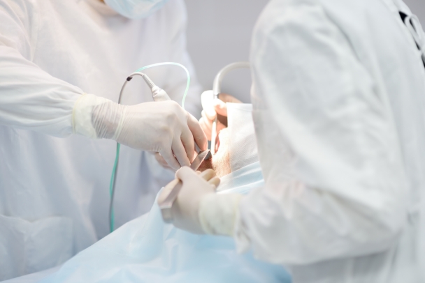 手術は1〜2週間の入院が必要になります。顎骨を適切な位置に再配置した後、チタン製プレートとスクリューにより固定します。固定具は顎の安定性を確認した後、除去する場合とそのままにする場合があります。