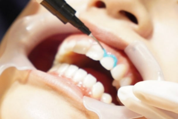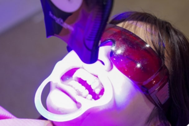 ホワイトニングする歯に薬剤(ジェル)を塗布し、専用ライトを照射し、時間をおきます。